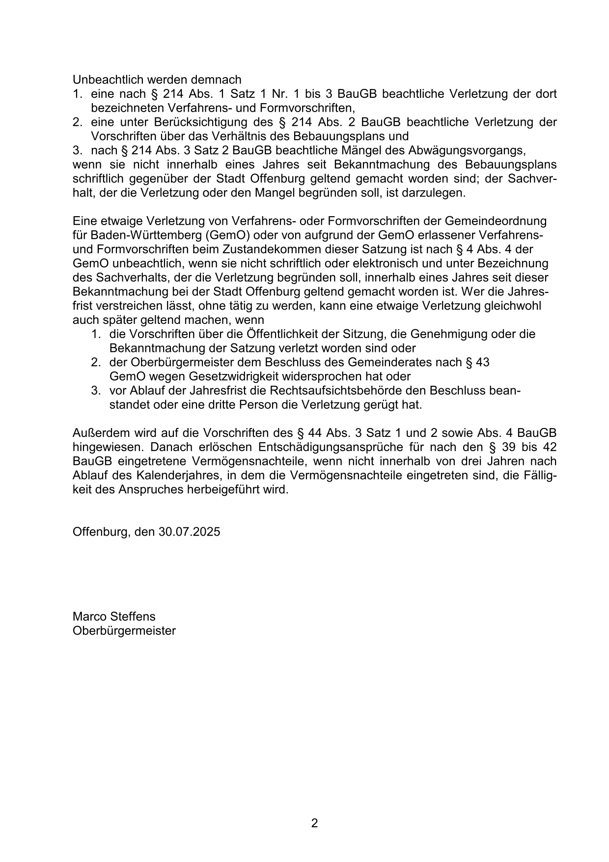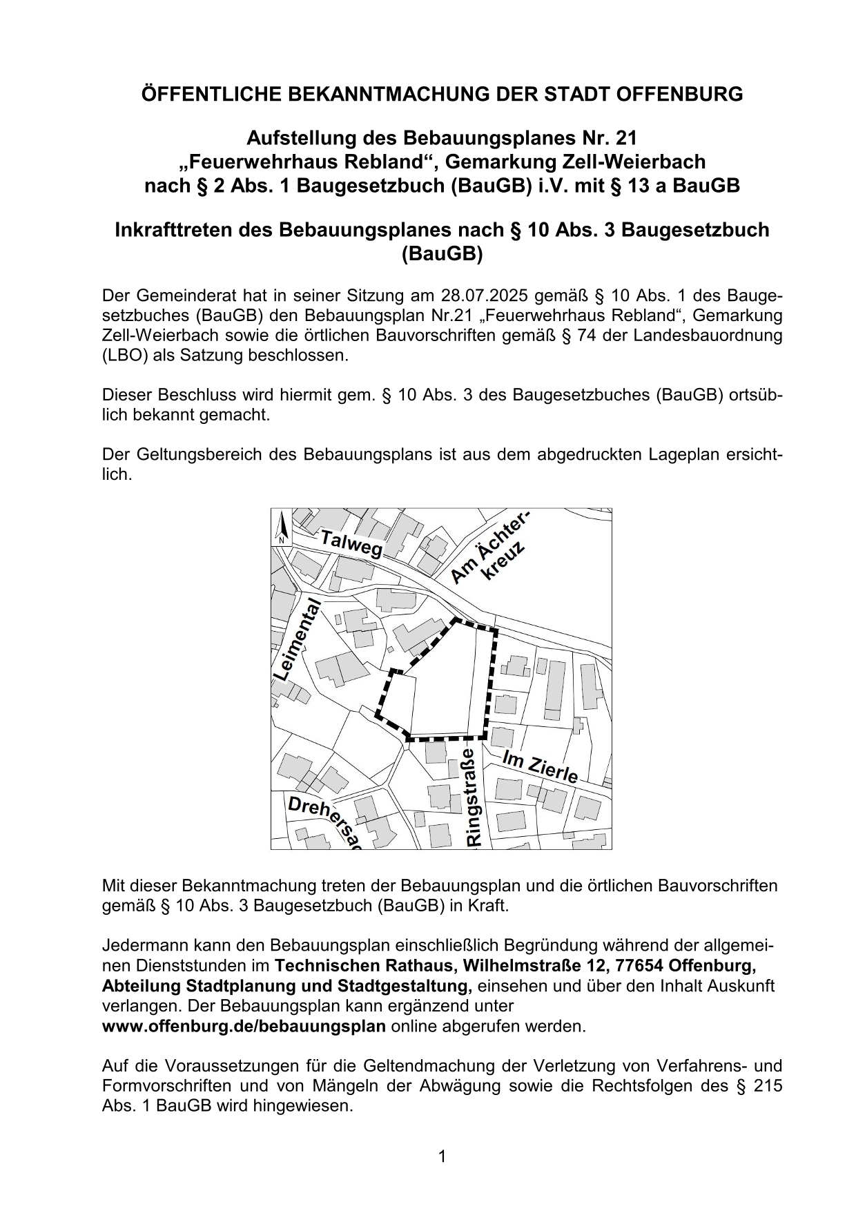 ÖFFENTLICHE BEKANNTMACHUNG DER STADT OFFENBURG