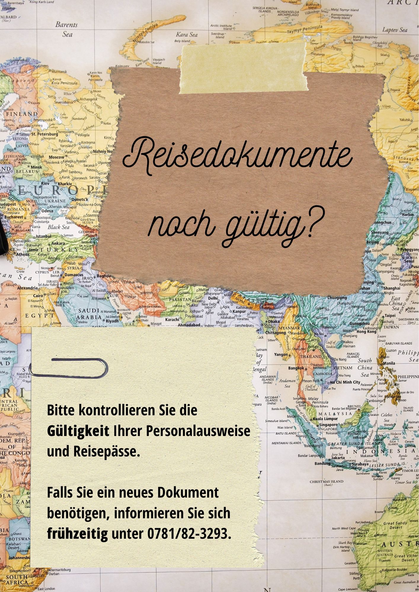 Die Urlaubszeit rückt näher. Damit die Reise entspannt beginnen kann, bittet die Stadtverwaltung darum, rechtzeitig die Gültigkeit von Personalausweis und Reisepass zu prüfen. Immer wieder zeigt sich, dass Ausweisdokumente erst kurz vor der Abreise als abgelaufen auffallen. Bitte beachten Sie: Personalausweise und Reisepässe können nicht verlängert werden. Ist ein Dokument abgelaufen, muss es neu beantragt werden. Gerade in der Ferienzeit kann es aufgrund der hohen Nachfrage zu längeren Bearbeitungszeiten kommen. Es empfiehlt sich daher, frühzeitig einen Antrag zu stellen – denken Sie dabei auch an die Ausweise Ihrer Kinder.